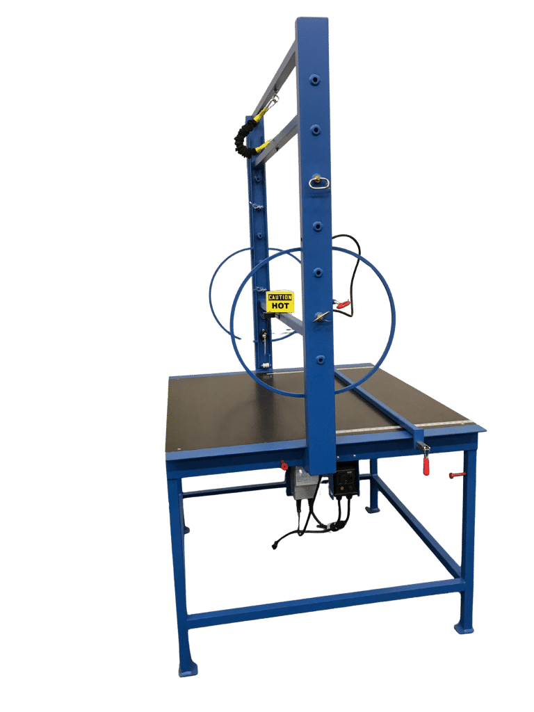 Hot Wire Form Cutters ThermoArc Cuts arcs for manhole blockouts from 2′ diameter to 8′ diameter in 1′ incrementsPlanes foam to desired thicknessLow Voltage control for safety ThermoCut Cuts straight or bevel on rectangle or circlesCan cut circlesHas fence for rip cutsLow voltage control for safety